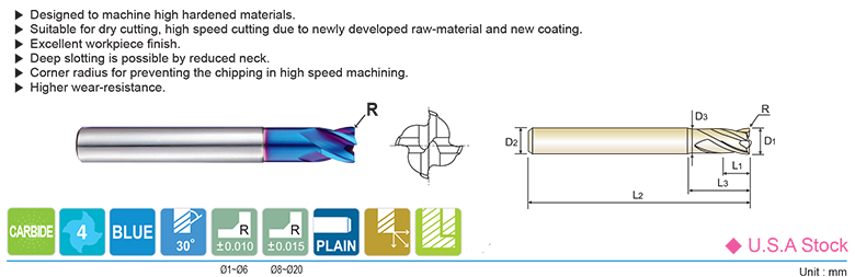 4 Flute with Corner Radius and Extended Neck (METRIC)