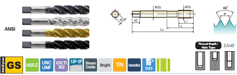 Spiral Flute Tap Bottoming Style for General Purpose - C2 / C3 / C4 / D9 SERIES
