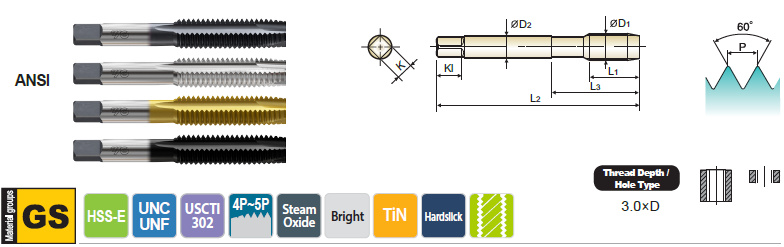 Spiral Point Tap Plug Style for General Purpose - I9 / J0 / J1 / J7 SERIES
