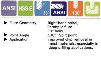 HSS-Co5% SCREW MACHINE DRILL PARABOLIC FLUTE - FRACTIONAL AND LETTERS
