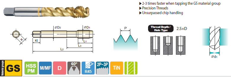 Spiral Flute Tap for High Speed Tapping - TTS61 SERIES