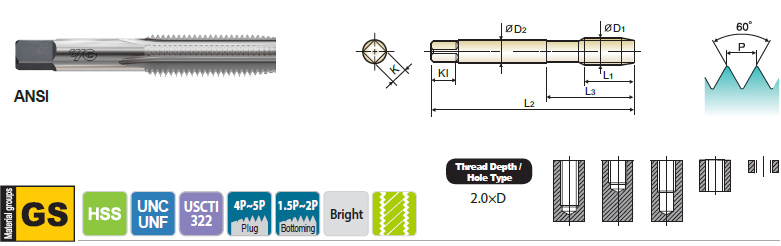 Straight Flute STI Tap Plug and Bottoming Style for General Purpose - T7426 SERIES