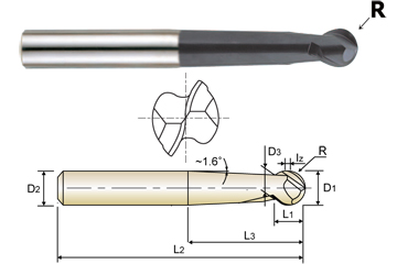 Description 2 FLUTE LONG LENGTH BALL NOSE ECONOMIC TYPE X-POWER CARBIDE