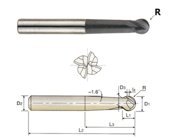 HIGH PERFORMANCE CARBIDE STEEL & CAST IRON 4 FLUTE BALL NOSE - MMC(ECONOMIC TYPE) - METRIC