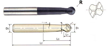 HIGH PERFORMANCE CARBIDE STEEL & CAST IRON 2 FLUTE BALL NOSE - MMC(SPHERE TYPE) - METRIC