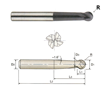 HIGH PERFORMANCE CARBIDE STEEL & CAST IRON 4 FLUTE BALL NOSE - MMC(SPHERE TYPE) - METRIC